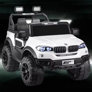 Детский электромобиль в стиле внедорожника. Доступны различные цвета кузова, такие как белый и синий. Оснащен большими колесами с протектором, что делает его подходящим для езды по разным поверхнос...