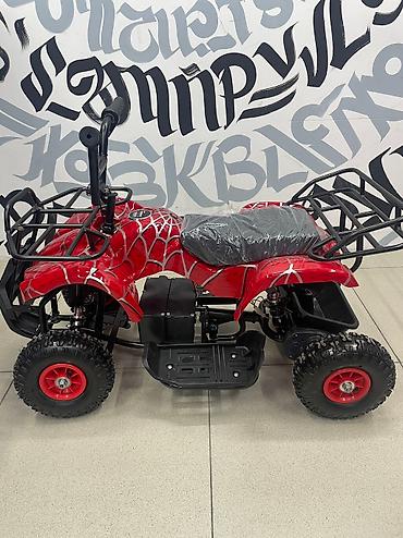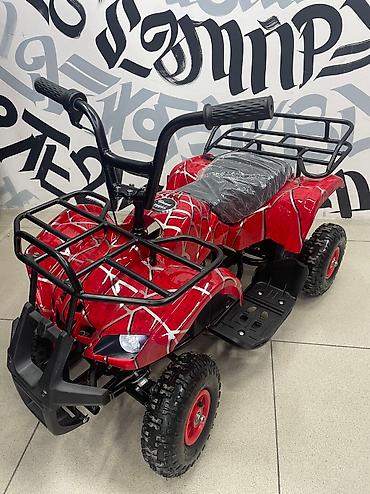 Детский электрический квадроцикл - Яркий дизайн в красной расцветке с принтом, светодиодные фары. - Электропривод: бесшумная работа, простое управление «газ-тормоз» с ручки. - Прочные внедорожные ...