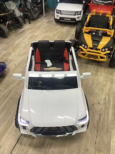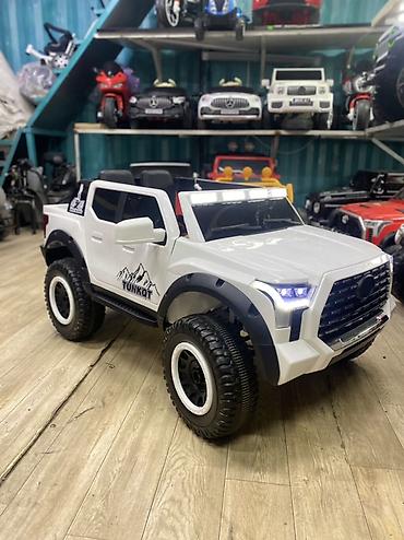 Цвет на фото: белый с черными элементами. Модель на 12V с двухмоторной или четырёхмоторной компоновкой (в зависимости от версии производителя), поддерживает движение вперёд/назад и несколько скоростей. Возможны музыка/сигналы, аудиовход/USB/BT (по комплектации).