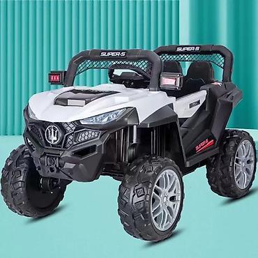 Детский электрический багги Super-S с двумя посадочными местами и открытым верхом. Модель оснащена большими колёсами с выраженным протектором, обеспечивающими хорошее сцепление с поверхностью. Прочный каркас и детализированный дизайн с имитацией фар и решетки радиатора делают его схожим с настоящим внедорожником. Подходит для детей, обеспечивая увлекательное и безопасное вождение.