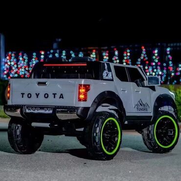Детский электромобиль в стиле Toyota Tundra, с пульта управления выполненный в белом и серый цвете. Обладает светодиодной оптикой, включая фары и верхнюю световую панель. Оснащен большими гелевый к...