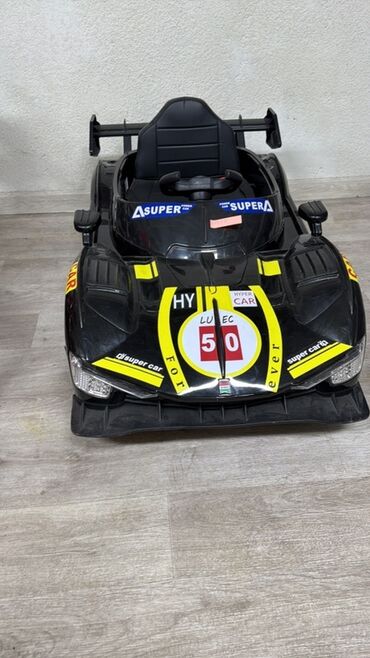 - Электропривод, управление рулём и педалью газа; подходит для катания по ровным поверхностям.