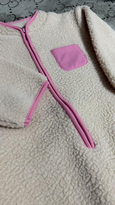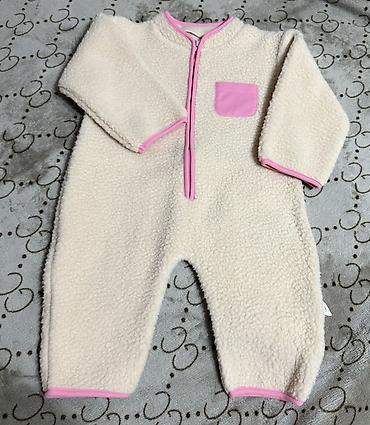 Тёплый детский комбинезон из мягкого флиса (шерпа) бежевого цвета с розовой отделкой. Размер 80 см