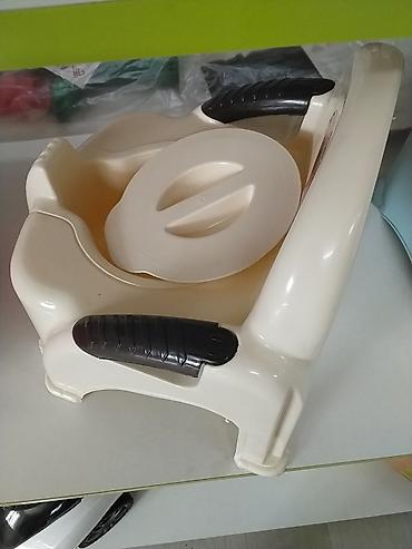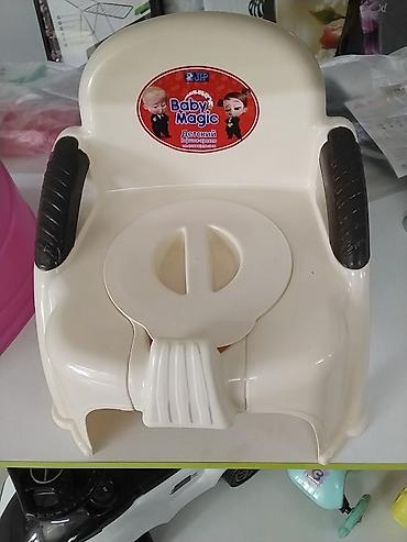 Детский горшок в форме стульчика с высокой спинкой. Изготовлен из