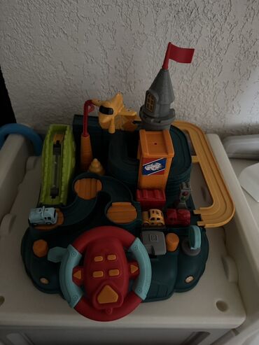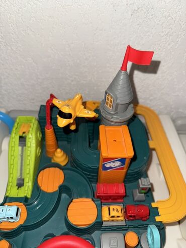 - Механические переключатели и рычажки для запуска машинок и самолёта, вращающиеся детали.