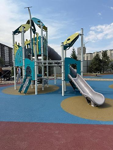 Игровой комплекс для детей с разнообразными элементами, включающими горки, лестницы и интерактивные панели. Выполнен в ярких цветах с использованием качественных, безопасных материалов. Подходит для установки на детских площадках в жилых комплексах, парках или частных территориях, обеспечивая детям пространство для активных игр и развития.