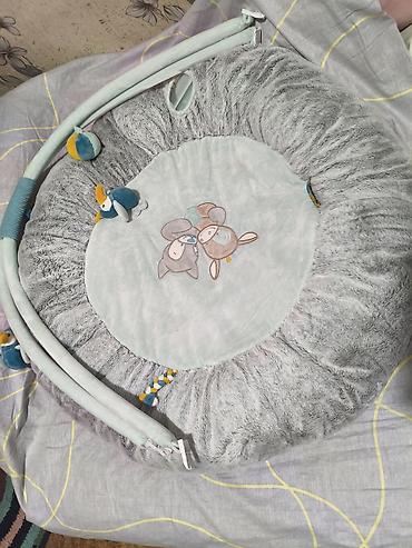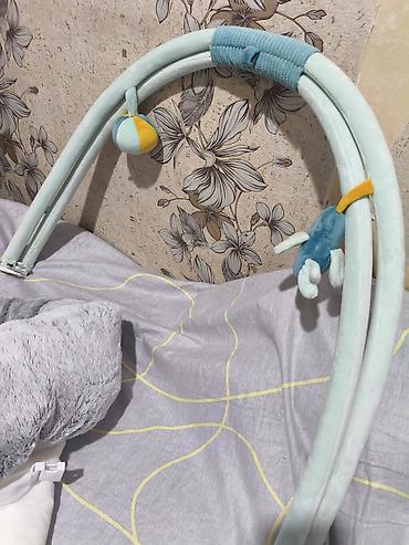 Детский игровой развивающий коврик с дугами и подвесными игрушками.