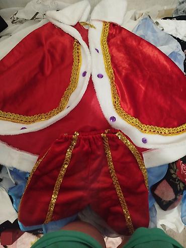 - Красная накидка-плащ с белым «мехом», золотым кантом и декором.