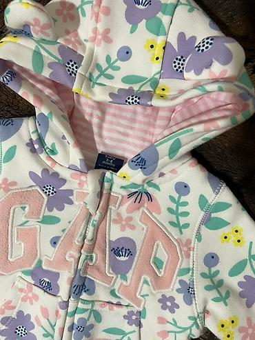 Детские комбинезоны GAP с капюшоном, цветочный принт (розовый фон