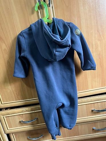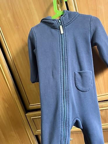 Детский комбинезон-слип с ножками 9-12 месяцев - Бренд: Bebetto (вешалка с логотипом на фото) - Цвет: серый меланж с тёмно-серыми рукавами и темно-синими манжетами/воротником - Материал: мягкий тр...