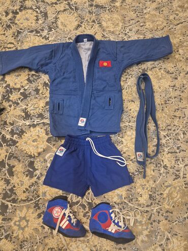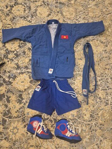 - Полный стандартный комплект для тренировок и соревнований по самбо в синем цвете.
