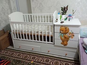 Детский комплект: кроватка-трансформер с комодом и выдвижными ящиками