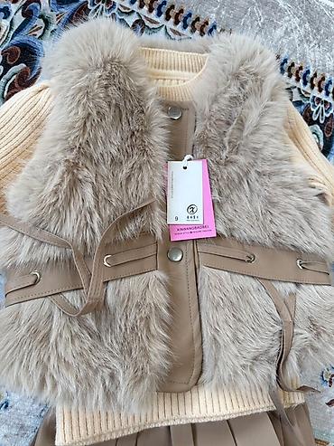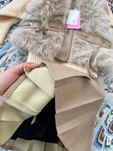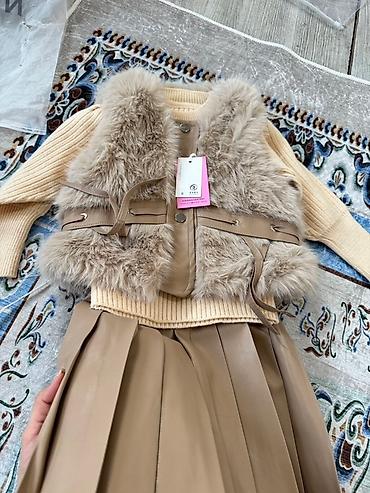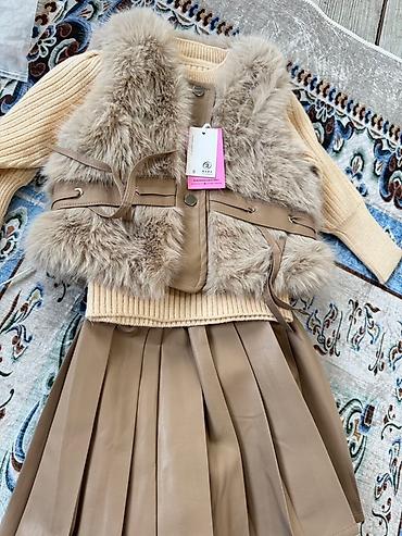 - Плиссированная юбка из кожзама в цвет жилета; внутри мягкая подкладка.