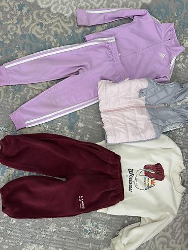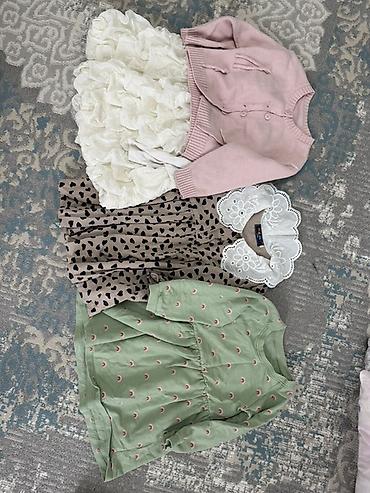 Детский комплект одежды для девочки 4 года . Цена символично: все платья за 350сом ;джинсы с кофтой 250сом ; безрукавка со спортивными за 100сом там пятна есть ;остальные бесплатно .
