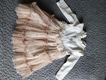 Набор детской одежды для девочки, примерно на возраст 2–4 года (ориентируйтесь по фото и длине рукавов). В комплекте: - Платье-миди кремового цвета: верх — трикотаж с фактурной вязкой, низ — много...