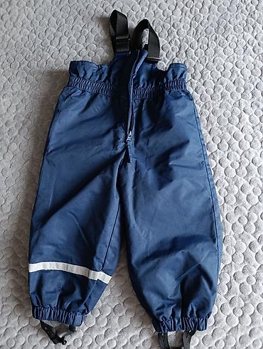 - Демисезонные/дождевые брюки на лямках (синие): влагостойкая ткань, центральная молния, эластичная талия и манжеты, светоотражающая полоса на штанинах, съёмные/регулируемые штрипки.