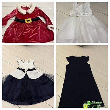 Детские вещи набором (размеры примерно на 2–4 года, ориентируйтесь по фото): 1) Платье в клетку с объемным белым воротником-пелериной и длинными рукавами на резинке. Застежка на пуговицы спереди, ...