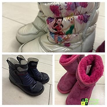 Детские верхние комплекты/комбинезоны (на фото — 3 позиции). 1) Зимний комплект из куртки и полукомбинезона: - Цвет темно‑синий. - Теплая куртка на синтепоне с капюшоном, отделанным мягким мехом. ...