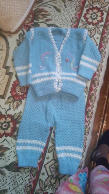 1) Вязаный комплект из трех. предметов, голубой: