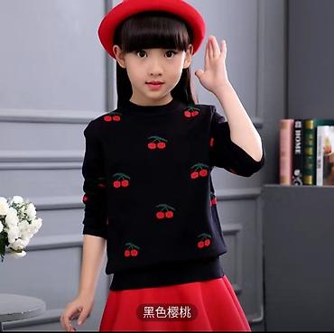 - Вязаный свитер с вишенками: черный джемпер с круглым вырезом, эластичными манжетами и мелким жаккардовым рисунком «вишни» по всему полотну. Мягкая трикотажная фактура, хорошо держит форму, подходит для сочетаний с юбками и джинсами.