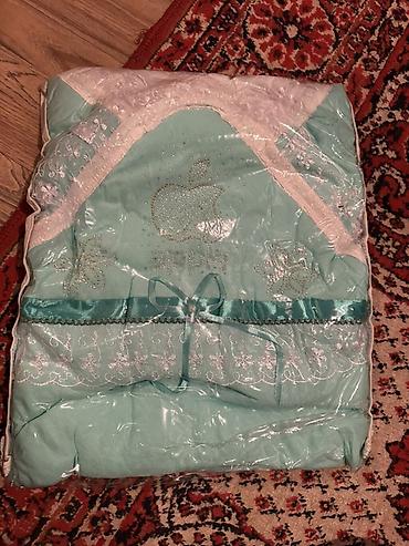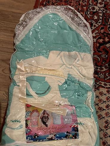 - Конверт/набор для новорождённого в чехле: мятно-белая гамма, верх с кружевной отделкой и прозрачным окошком. Подходит для выписки и для прогулок в коляске.