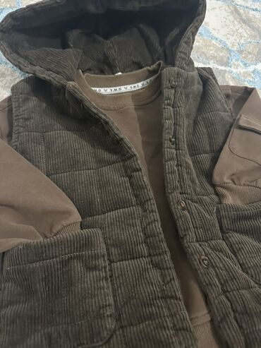Набор детской одежды для мальчика, примерно на 9–12 мес. В комплекте: - Теплая полосатая кофточка с капюшоном и карманом-кенгуру.Зара - Джинсовые брюки на меховой подкладке, вышивка с машинкой. - ...