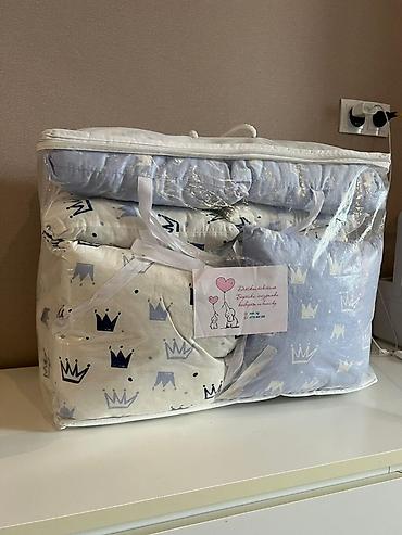Детский комплект для кроватки Состав набора на фото: - бортики-подушки