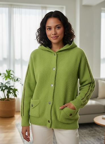 1) Тёплая зелёная альпака/куртка с капюшоном