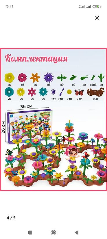 Детский конструктор “Garden Building” — набор для создания цветочного сада. В наборе 272 детали, но 2 бабочки сломались