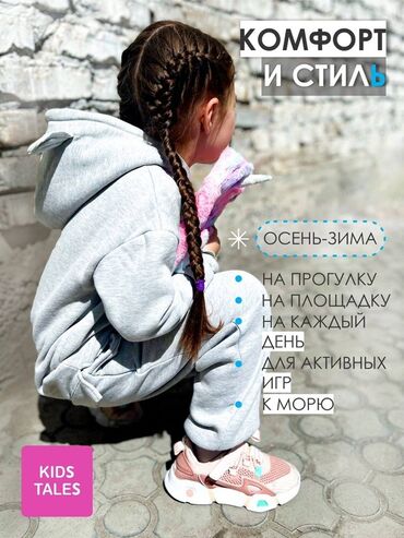 Детские спортивные костюмы с капюшоном (худи + брюки) 750 сом, оптом 600сом. - Черный цвет, мягкий трикотаж на флисе/начесе. - Принты на выбор: забавные «глазки и рот» на худи и штанах или мультяш...
