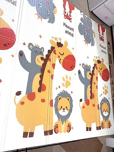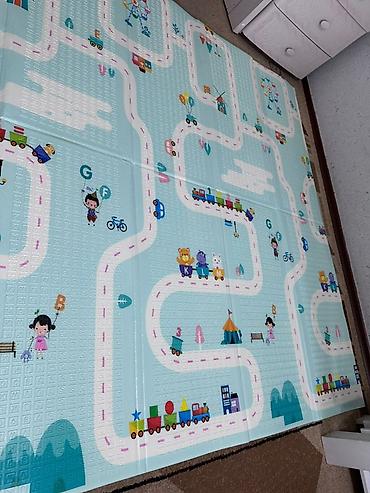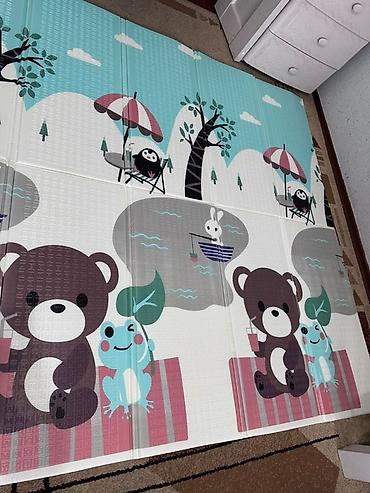 - Двусторонние яркие принты: животные, дорожки с машинками и поездом, мишки и др. Сюжеты помогают в игре и развитии.