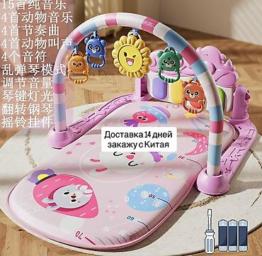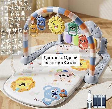 - Мягкий игровой коврик с дугой и подвесными погремушками-животными