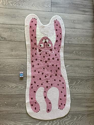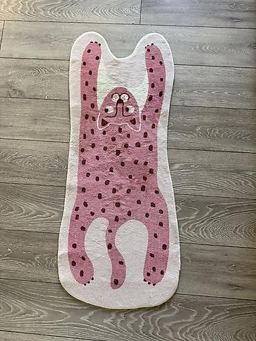 - Игровой и декоративный ковёр нестандартной фигурной формы: силуэт кошки с поднятыми лапами.