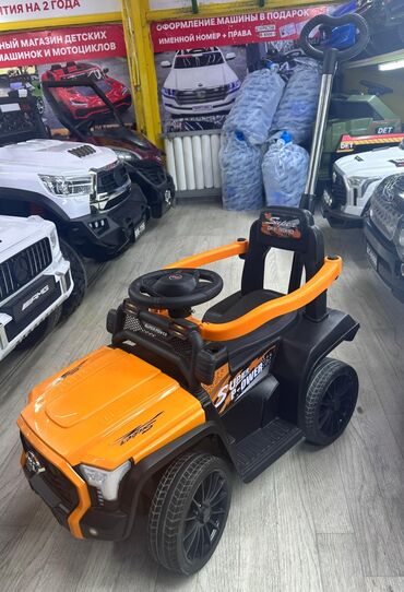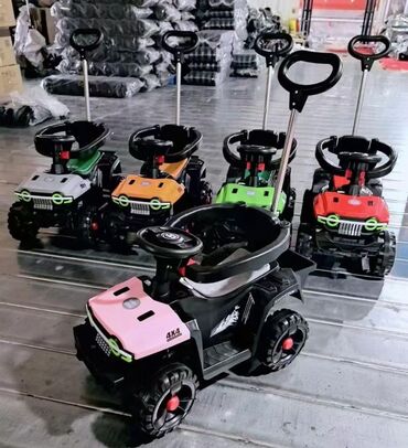 Детский квадроцикл-каталка с эргономичным сиденьем и удобным рулем, предназначенный для маленьких водителей. Модель оснащена широкими колесами с рельефным протектором, обеспечивающими устойчивость и хорошее сцепление с поверхностью. Некоторые модели комплектуются съемной родительской ручкой для удобства управления и помощи ребенку. Яркая расцветка и детализированный дизайн делают его привлекательным для детей, способствуя развитию координации и навыков вождения.