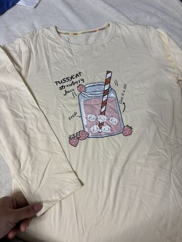 - Принты: мультяшные и надписи — «Snoopy/Peanuts», «Jeanswest» с единорогом, «Pussycat strawberry juice» с котиками и клубникой, астронавт, динозавр, персонажи в пиксельном стиле и др.
