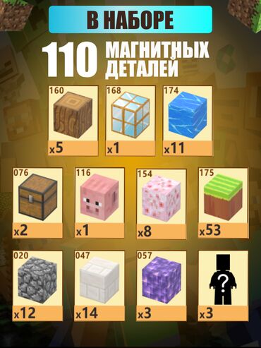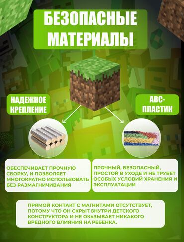 Познакомьте вашего ребёнка с миром Minecraft в реальности! Этот яркий и безопасный магнитный конструктор с 110 деталями даёт бесконечные варианты сборки и вдохновляет на создание собственного кубического мира.