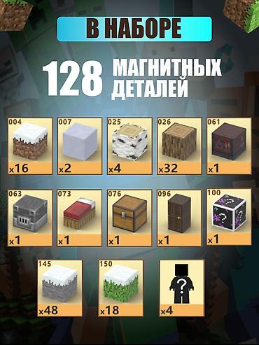 🧲 Детский магнитный конструктор MINECRAFT (128 деталей)