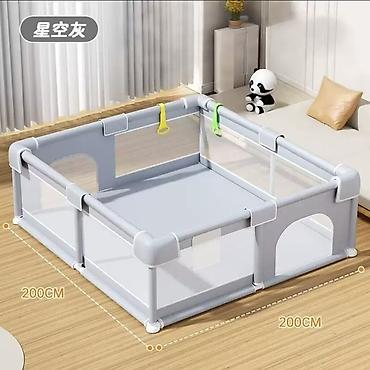 - Просторная зона для игр и ползания: квадрат 200×200 см, высота борта 65 см.
