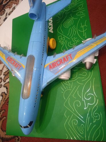 - Крупный пластиковый самолёт “AIRCRAFT” голубого цвета с шасси.