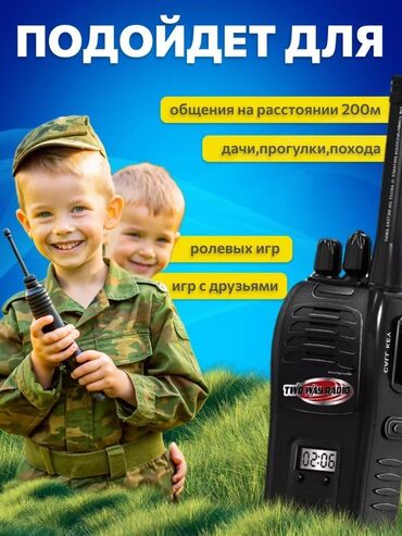 - Размер одной рации: примерно 19.5 × 6.5 × 3.8 см — удобно для детской руки.