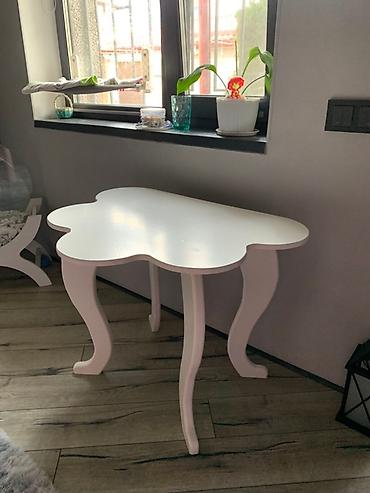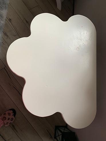 - Столик с фигурной столешницей в форме облака. Снизу есть маленький отдел для мелочей.Цвет: белый.Четыре изогнутые устойчивые ножки.