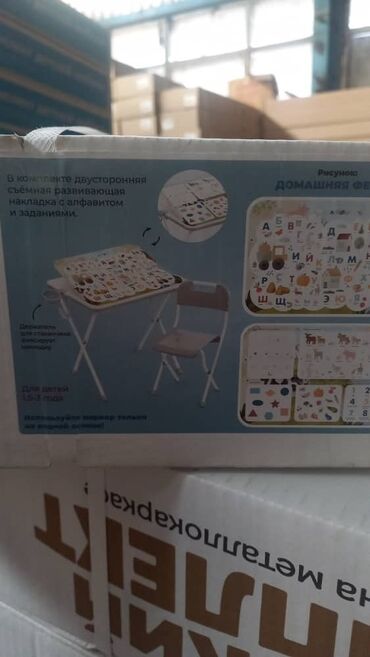 Комплектация: стол - 1 шт. , стул - 1 шт. Возраст ребенка: для детей от 1 до 4 лет Яркий комплект мебели станет отличным решением для обустройства творческого рабочего места ребенка, а обучение превратится в увлекательную игру. Особенности: - съемная двусторонняя ламинированная накладка на столешнице - полезный обучающий материал с заданиями на накладке - кромка столешницы предотвращает скольжение накладки на столе - минималистичный дизайн - крючок для сумки или рюкзака. - зажим - подстаканник. - легкое в уходе пластиковое сиденье стула. - пластиковые колпачки на опорах против скольжения и повреждения напольного покрытия. - легкое сложение, компактное хранение - размер столешницы: 60 × 45 см - высота до сиденья: 35 см - размер сиденья: 26 × 29 см