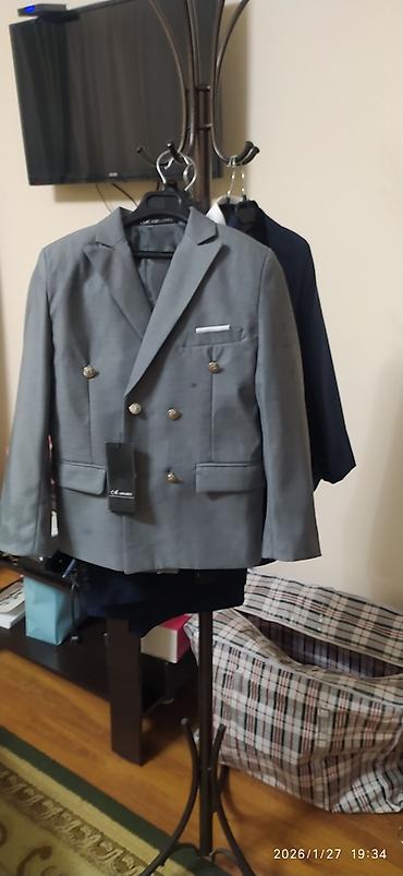 - Цвета: серый однотонный (двубортный) и серый в клетку (однобортный).