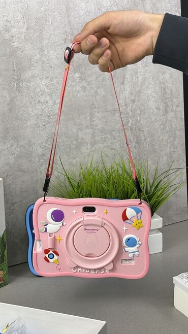 Детский планшет G-Vill G9A - Яркий коричневый чехол (фронтальная видна над экраном, задняя — на спинке). - Экран с диагональю около 7–8", под защитным бампером с утолщенными углами. - Съемный «об...
