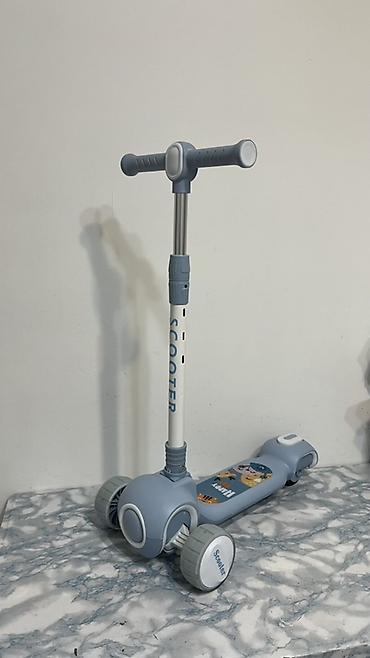 Цвет: серо-голубой с белыми элементами. Отлично подходит для прогулок и обучения катанию благодаря устойчивости и многофункциональности.