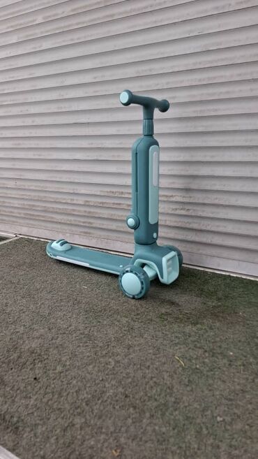 - Тип: самокат с возможностью превращения в беговел/сидячий вариант (откидное сиденье на шарнире).