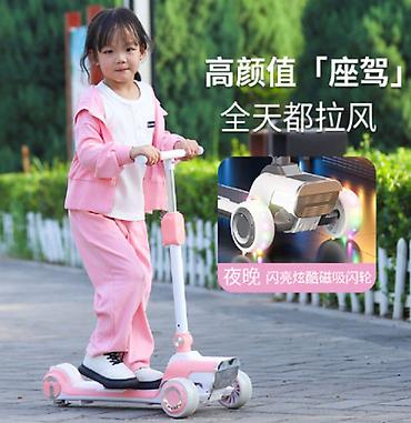 Цвета: серый и розовый. Подходит для ежедневных прогулок, катания днем и вечером благодаря подсветке колес и музыкальному сопровождению по Bluetooth.
