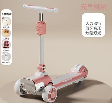 - Формат: детский электросамокат с возможностью кататься как от электропривода, так и «раскаткой» ногой.