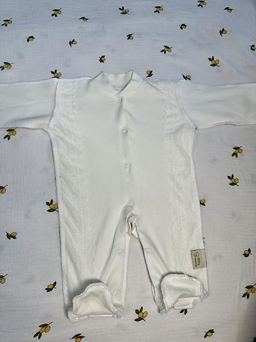 Классный комплект на выписку белый. Очень нежный, красиво смотрится. Новый. Кофточка, ползунки, слюнявчик, царапки.
