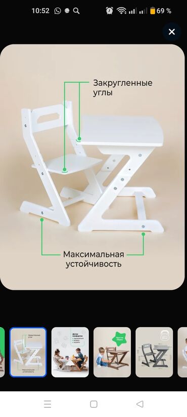 Продаю стол + стул ,подходит от 1 года до 7 лет (новый) очень качествеенный ,на вайлдберисе такой стоит 16 тыс сомов Мы продадим за 8 тыс ,комплект